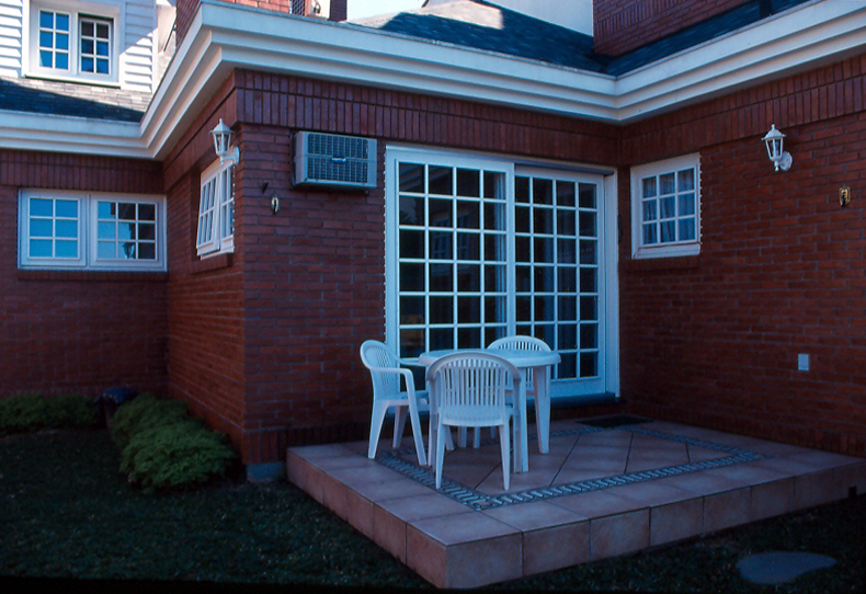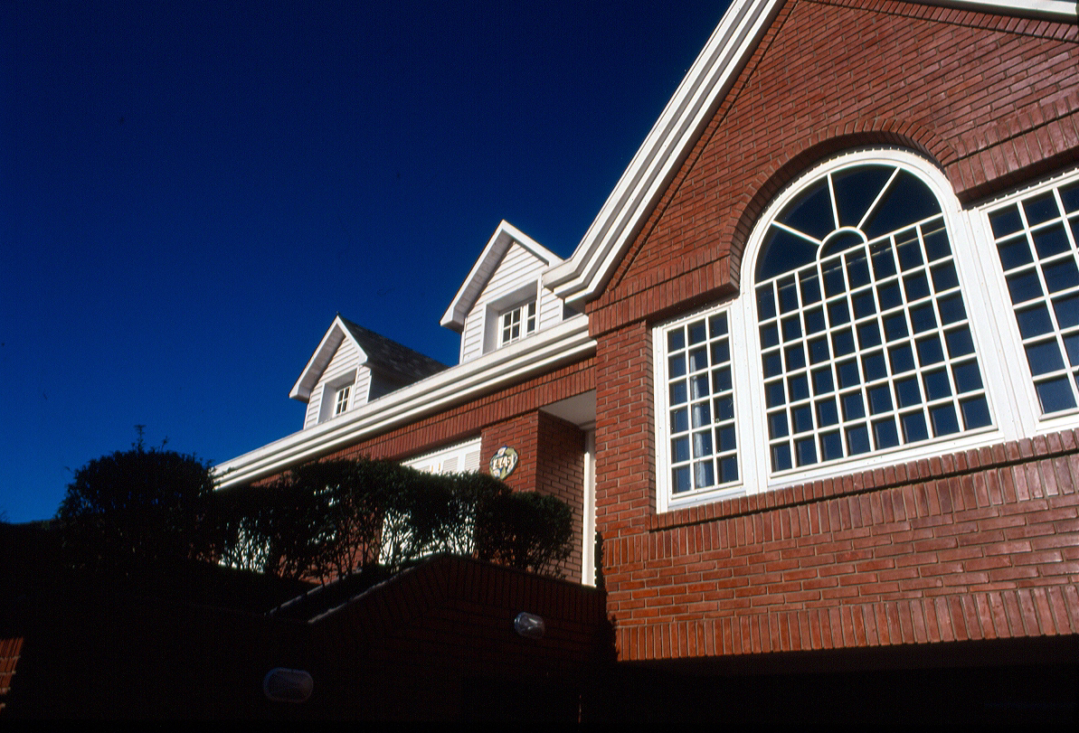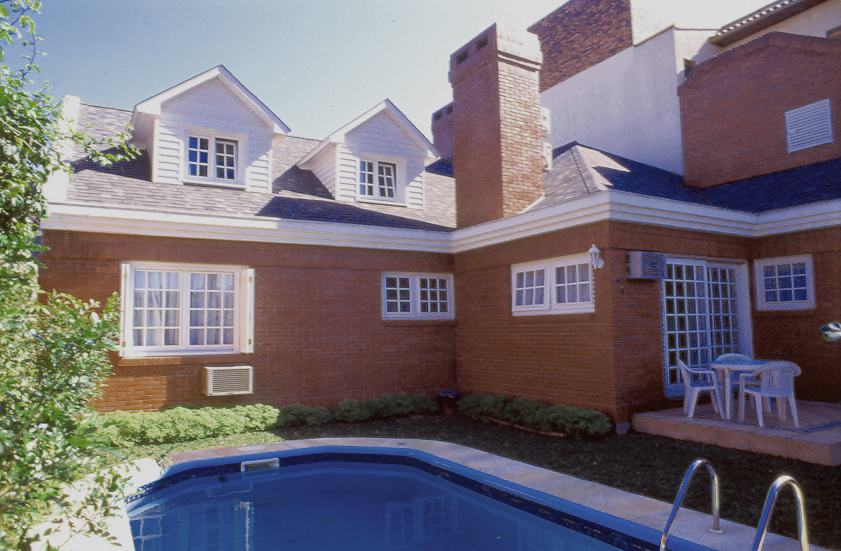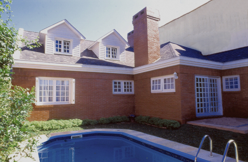 A casa é toda em tijolos a vista com telhado de telha americanas tipo “Shingles”.