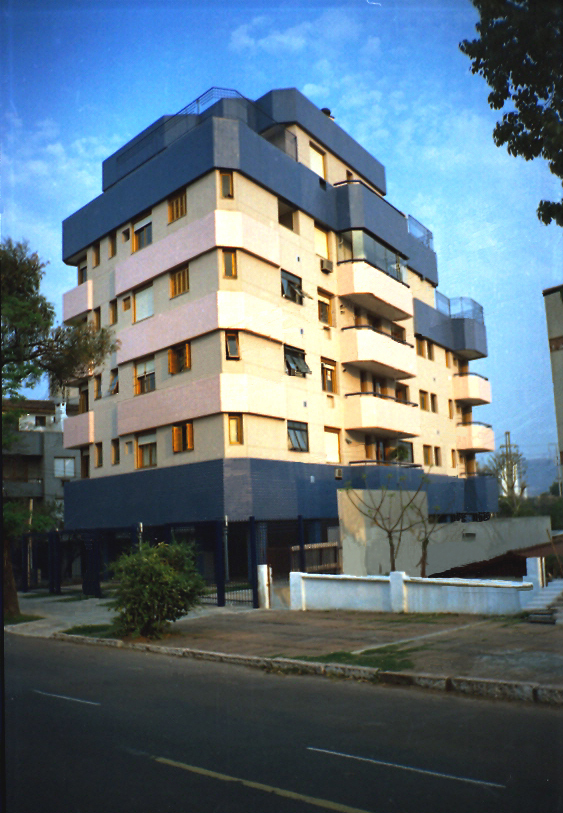 Porto Alegre/RS Edifício de apartamentos de 1 e 2 dormitórios projetados em terreno com forma triangular, o que exigiu soluções arquitetônicas diferenciadas para obter-se apartamentos confortáveis.